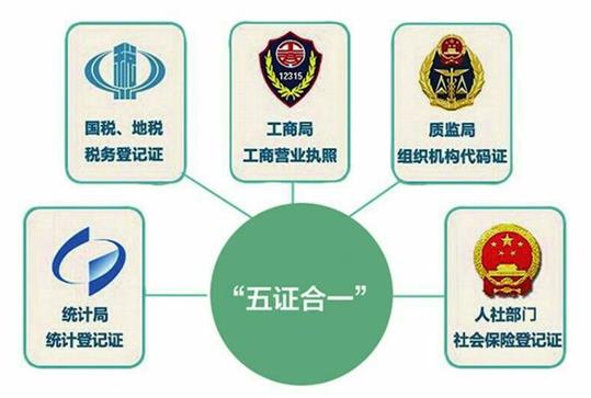 以往企业需办齐营业执照、组织机构代码证、税务登记证、社保证、统计证等5本证照,要跑工商、质监、税务、社保、统计等5个部门,提交5份材料。去年10月8日,市工商局颁发首张“三证合一、一照一码”营业执照,解决了工商、质监、税务的业务信息共享,税务登记证、组织机构代码证不再核发。“五证合一”新政实施后,将再次通过“一窗受理、互联互通、信息共享”,由工商部门、人社部门、统计部门分别核发的营业执照、社会保险登记证、统计登记证改为由工商部门核发加载统一社会信用代码的营业执照,市场主体的社会保险登记证和统计登记证不再继续发放。