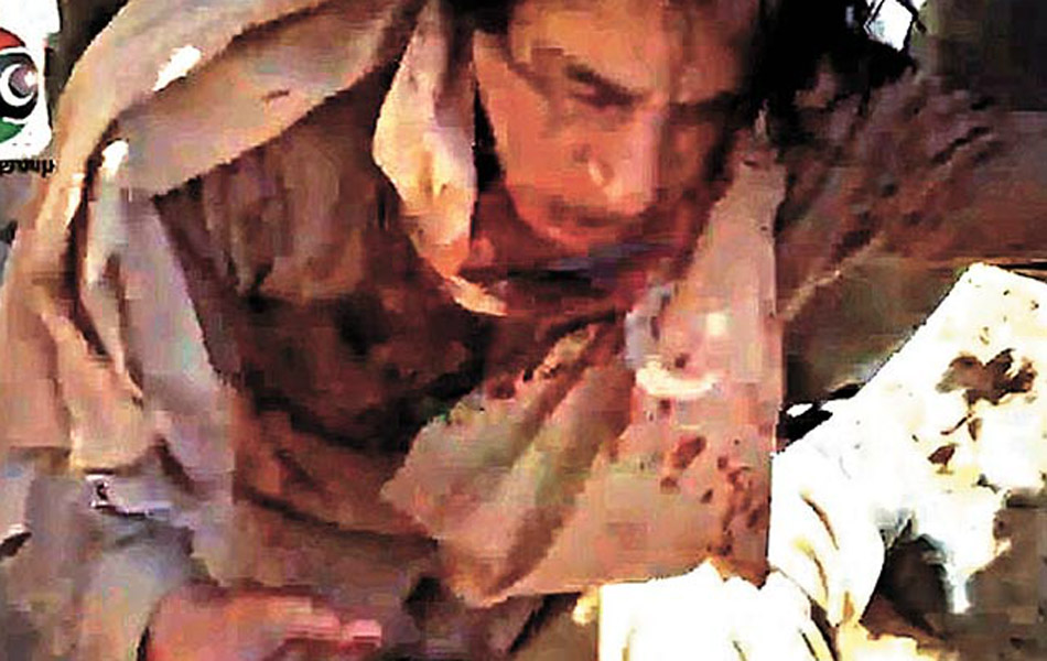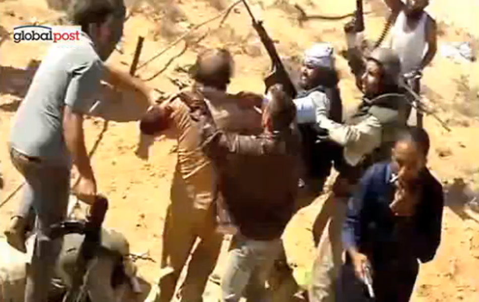 GlobalPost.com前日公开他死前被虐杀的最新片段,是连日来所见最血腥暴虐的。片中可见,他被过渡政府部队战士从水渠拖出,有男子疑利用一把美国制卡巴( BK&T)军刀,从后插入下体。