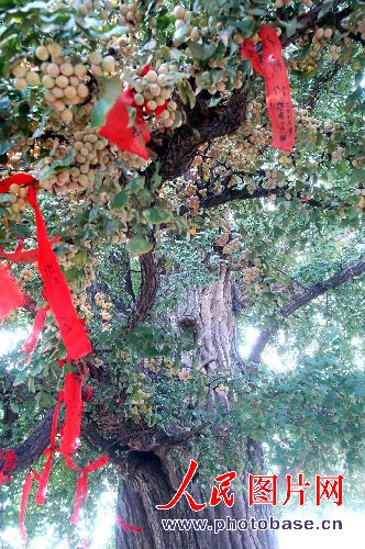 山东省临沂市郯城县新村乡这棵3000余岁的银杏雄树枝繁叶茂硕果累累。