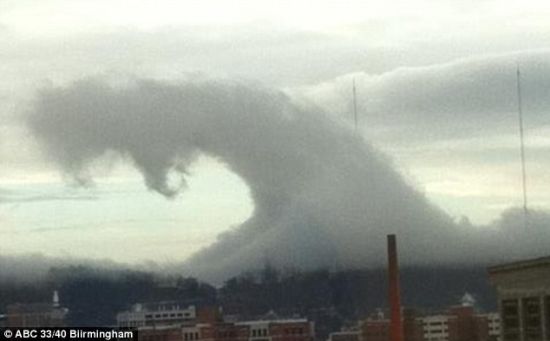 上周,美国阿拉巴马州,伯明翰附近的一家机场上空出现怪异的云浪。