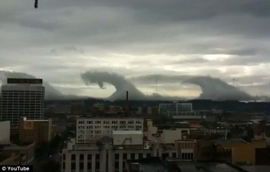 北京时间12月22日消息,12月16日下午,美国阿拉巴马州的伯明翰上空出现怪异的波状云,好似海浪一样在空中翻滚。随着极具超现实色彩的云浪出现,所有人的目光都投向天空,有人还用带有照相功能的手机拍下这罕见的景象。