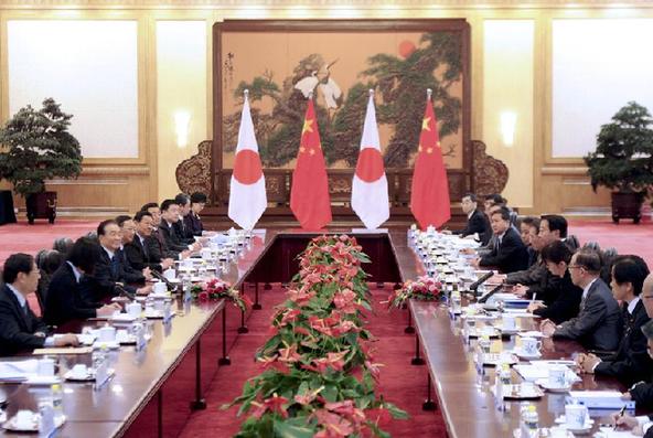 12月25日,中国国务院总理温家宝在北京人民大会堂与来华访问的日本首相野田佳彦举行会谈。