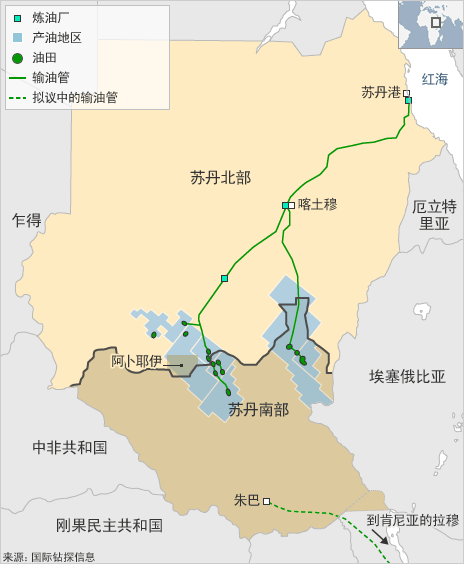 南北苏丹输油石油分布示意图