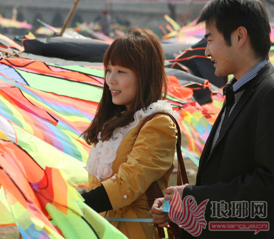 3月26日,罗庄区双月湖公园内,一对情侣正在选购风筝。连日来我市天气以晴好为主,随着气温的不断回升,市民纷纷走出家门,亲近自然,拥抱春天。