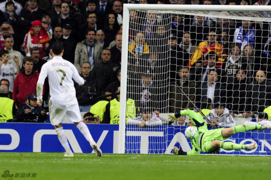 C罗的两次射门,诺伊尔都选择了自己的右下角进行扑救,而这也是他有意为之的,赛后诺伊尔说:“我在比赛中都一直观察他喜欢射左下角,尽管他在比赛中的点球射向了另外一个角,但是我觉得在点球大战中他会重新选择他喜欢的角度,我很幸运。”而虽然第一次错了,但点球大战中,他却成功的完成了对C罗的扑救,更为可怕的是,在随后卡卡的点球中,诺伊尔再次选择同样的方向,再次将球扑出。