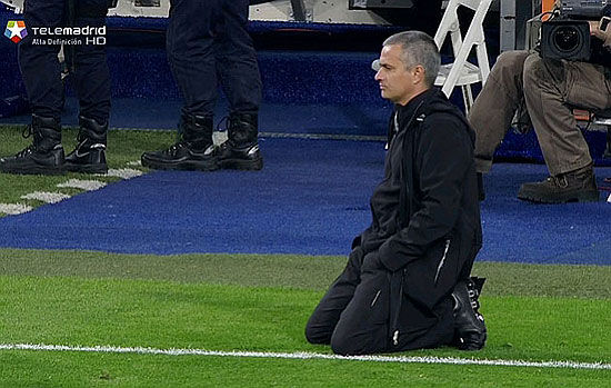穆里尼奥双膝下跪观看点球战