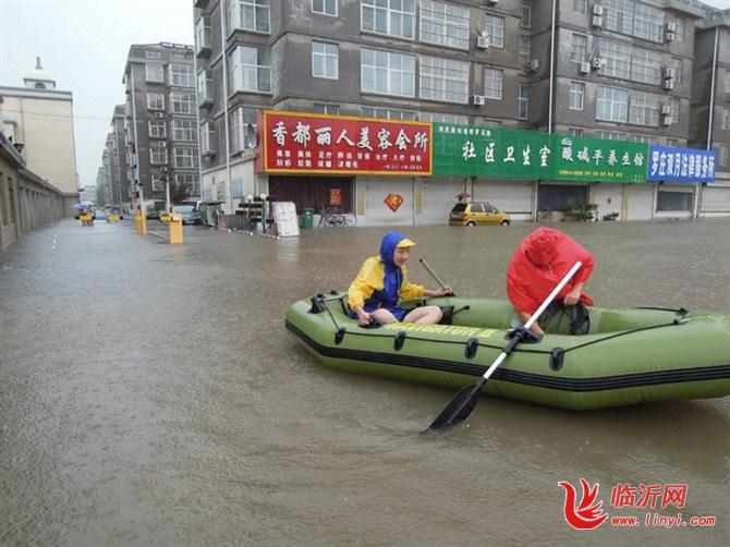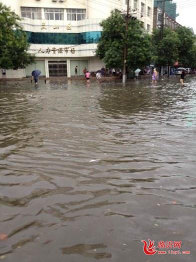 此外,临沂城区部分地段由于积水较深,导致交通受阻,一些路段变成“泽国”,市区部分地方积水深达40厘米。
