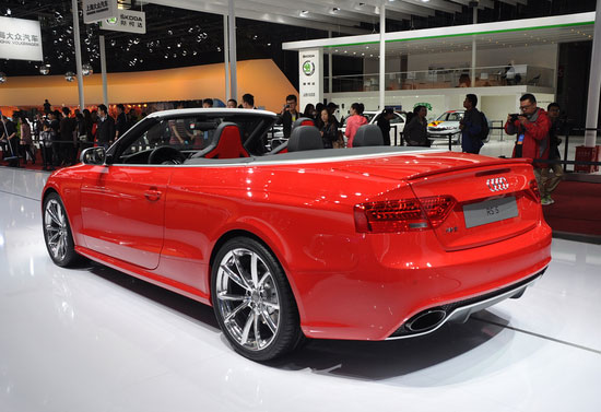 新上市的RS5 Cabriolet敞篷车型外观与早先发布的Coupe版相同,其亮点在于采用软顶敞篷设计。官方数据显示,该车开启和关闭软顶敞篷的时间分别为15秒和17秒,可在时速50公里/小时内完成该操作。此外,该车标配的是19英寸的铸造铝合金轮毂,另外还可选配20英寸的轮毂。