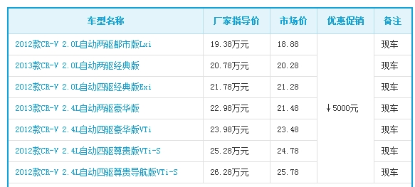 近日,编辑从临沂荣丰东风本田4S店了解到,东风本田CR-V,最高优惠5000元,现车充足,感兴趣的朋友可以到店咨询购买,具体优惠信息请见下表: