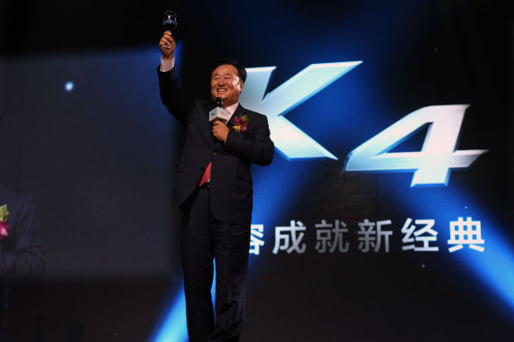 对于K4这款新车,起亚并没有请明星来代言,整场发布会重点放在了成果分享和前景展望上。在发布会上,东风悦达起亚总经理苏南永首先向现场的媒体和代理商宣布:“截止8月份,东风悦达起亚累计销量近40.3万辆,同比增长13%,位居国内乘用车市场第八。”他在讲话中还提到,东风悦达起亚计划在2017年实现全年销量突破百万,希望市场占有率超过5%。另外,本次发布会上演了风格各异的歌舞表演,同时穿插了抽奖环节,氛围热烈且轻松。
