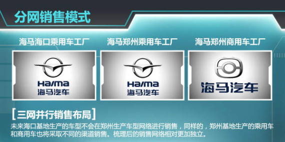 在加大产能的同时,海马汽车也将以分网销售模式进行销售网络的扩张,这种模式运行效率更高、能迅速扩大销量、品牌形象也更深入人心。处于企业转型期的海马汽车正需要这种销售模式,也就是说,未来海口基地生产的车型不会在郑州生产车型网络进行销售。同样的,郑州基地生产的乘用车和商用车也将采取不同的渠道销售。梳理后的销售网络相对更加独立, 三网并行的销售布局也有助于提高海马汽车得品牌认知度。