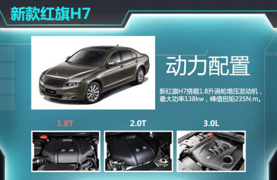 红旗作为一汽旗下的高端品牌,同时也标志着中国高端轿车的制造水平。H7在去年下半年月销量最低达到100辆左右,最高400辆左右。红旗H7现有的动力配置为2.0T和3.0L发动机,为了进一步拓展私人用车市场,红旗特推出搭载1.8T发动机的车型。