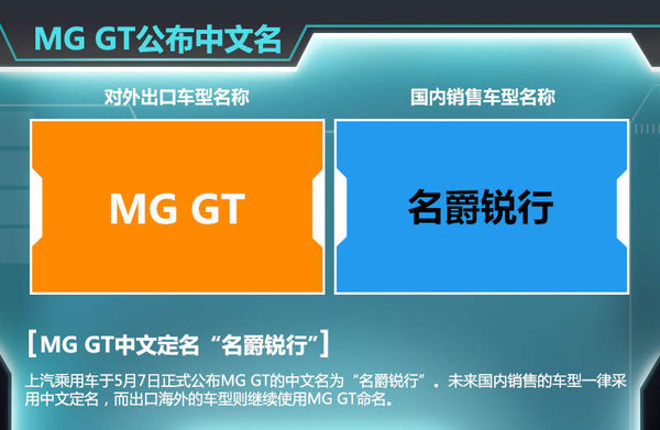 “锐行”二字,将MG GT所特有的锐利外观与一往无前的产品特征完美呈现。正如其代言人赵又廷所说,名爵锐行就是为年轻而生。不出意外的话,未来国内销售的车型将一律采用中文定名,而出口海外的车型则还将继续使用“MG GT”这一名称。