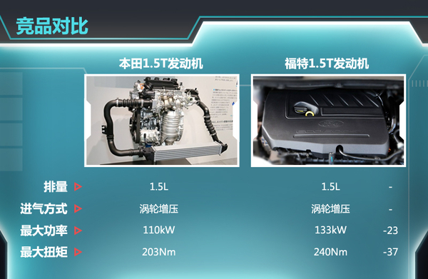 目前各大车企相继在国内汽车市场推出小排量增压发动机,如福特1.5T等,本田1.5T发动机与福特1.5T相同排量增压发动机对比并无优势,相信本田还会对该款发动机进行调校,以获得更高的动力输出。随着国内市场对发动机排量的要求越来越苛刻,各大车企都在小排量增压发动机方面做出努力,竞争会越发激烈。