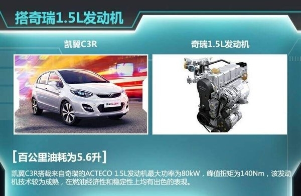 动力方面,凯翼C3和C3R自动挡将继续搭载奇瑞ACTECO 1.5L自然吸气发动机,最大功率80kW,峰值扭矩可达140N·m。考虑到自动挡车型的耗油量相对较高,所以新车的百公里综合工况油耗可能会在6L上下。值得一提的是,新车将采用类似路虎的旋钮式换挡结构,娱乐性大大提升。