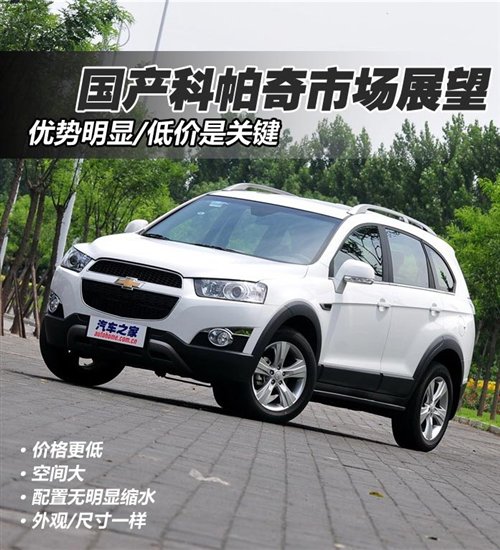 价格是关键:在聊国产新车之前,我们先来看看进口科帕奇的情况。2007年年底科帕奇引入,年销售7000辆左右的成绩一直没有突破。去年,上海通用对科帕奇进行了价格的调整(当时上市新闻),其中3.2L车型的价格下调将近10万元,市场反馈有了一定的调整。今年6月,改款科帕奇再度出击(新款科帕奇上市新闻),更加时尚的外形和动力系统的提升,让科帕奇的销量也有了明显提升,从去年全年8000多辆的成绩,提升到今年半年5000辆的成绩。不得不承认,在这里,价格、新款的改动之处都是很重要的因素。