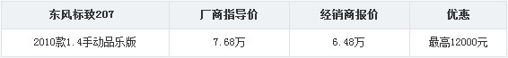 临沂骏狮标致207品乐版最高优惠1.2万