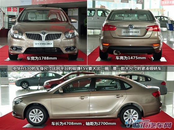 中华H530车身整体尺寸为4708mm/1788mm/1475mm,轴距为2700mm,作为一款紧凑级车型已属于不错的表现了,值得一提的是新车在车身长度与高度上都要大于现款的骏捷。新车的腰部线条带有明显上挑,侧面造型修长健美,不过还是能找到一些同类车型的影子。