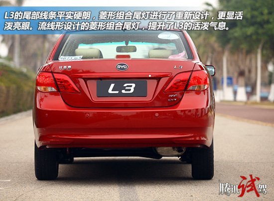 除了上面提到几款车型以外,比亚迪旗下的中高端紧凑型车L3也算是我个人比较倾心于值得推荐的一款车型,其整车的价格区间为8.28-11.88万元,共有三款车型,且均为1.8L车型,而3000元的节能补贴,对于打算购买L3的消费者来说,还应该是看的比较重的。