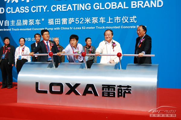 2011年9月29日,福田雷萨国Ⅳ标准52米泵车上市仪式在北京怀柔欧曼数字化工厂隆重举行。据悉,这是中国首款达到国Ⅳ排放标准的自主品牌泵车。福田汽车集团副总经理吴越俊先生、福田雷萨泵送事业部总裁范现军先生与特邀行业领导及嘉宾共同为新品上市揭幕。