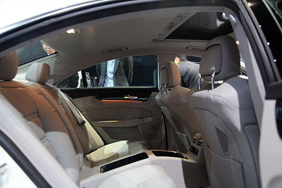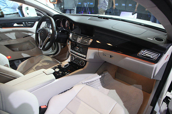购车者可以选择褐色的节瘤胡桃木或黑色的白蜡树。每辆CLS被4只动物的皮革所包裹着,这点也许会另动物保护组织不满。特别是1.6毫米厚的半苯胺高级真皮的使用,因为只有自然毛孔才能给整个内饰环境带来一种完美的自然光感。