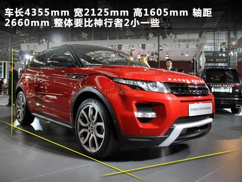 揽胜极光Evoque coupe车身长度为4351mm,宽度为1895mm,而高度则为1534mm,总体上要比神行者2还小一圈。揽胜极光EVOQUE完全体现揽胜品牌奢华、非凡品质与全地形性能核心价值,将LRX概念车独特又振奋人心的精神变为现实。