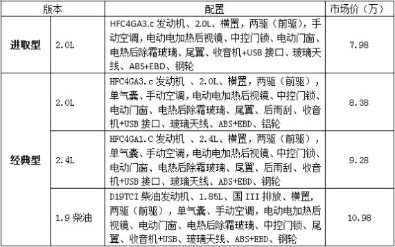 新浪汽车讯 2月1日起,江淮将推出瑞鹰进取型,市场售价为7.98万元,并同期调整瑞鹰经典型两驱2.0L到8.35万元,经典型两驱柴油1.9T到10.98万元,经典型两驱2.4L到9.25万元。