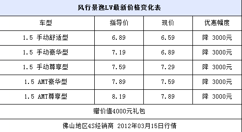 热销车型价格跳水专题系列——风行景逸