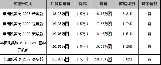 丰田凯美瑞优惠1.5万!送原厂导航