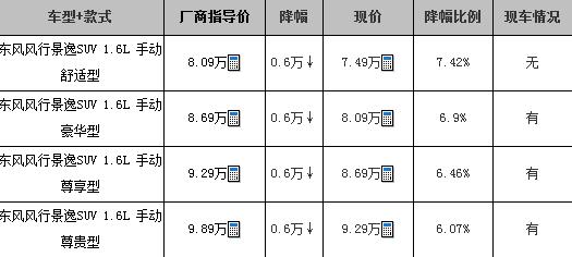 近日,汽车临沂站编辑从东风风行汽车某4S店获悉,店内景逸SUV现车充足,白色、银色、灰色现车较多。目前购车优惠3000元现金和3000元惠民补贴共计6000元。可以预订,订金5000元,提车等待约2周。关注该车的网友可致电经销商进行详细咨询,想试驾的朋友也可到店赏车试驾。