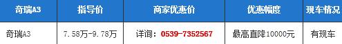 临沂奇瑞A3享3000元补贴 最高降10000元