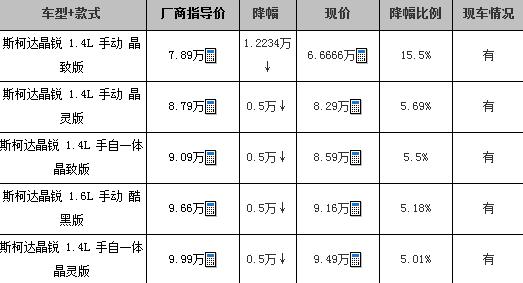 斯柯达晶锐特价66666元起现车销售