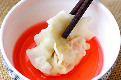 10.锅中放水煮开,将云吞放入后,立即用筷子搅拌一下,煮开后再煮2-3分钟,待云吞浮上水面,就表示熟透了;
