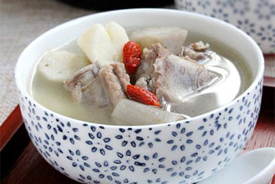 辅料:牛蒡1根 山药1根 枸杞子10克 调料:食盐5克 姜1小块 牛蒡山药排骨汤的做法