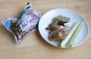 食材明细:带皮五花肉500克 葱适量 姜适量 调料包1个 甜面酱30克 老抽10克 生抽50克 糖适量 鸡精适量