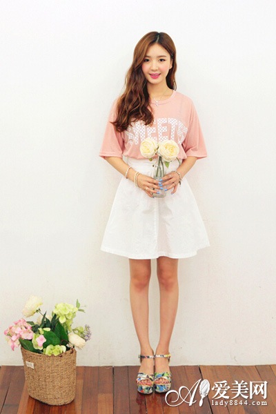 短袖T恤+短裙 变成长腿就这么简单