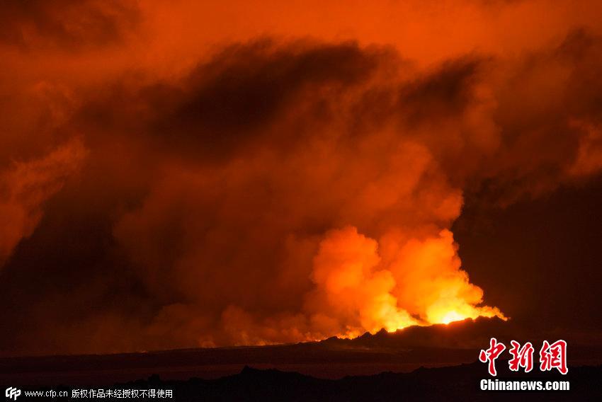 当地时间2014年9月26日,冰岛巴达本加(Bardarbunga)火山熔浆喷发。图片来源:CFP视觉中国