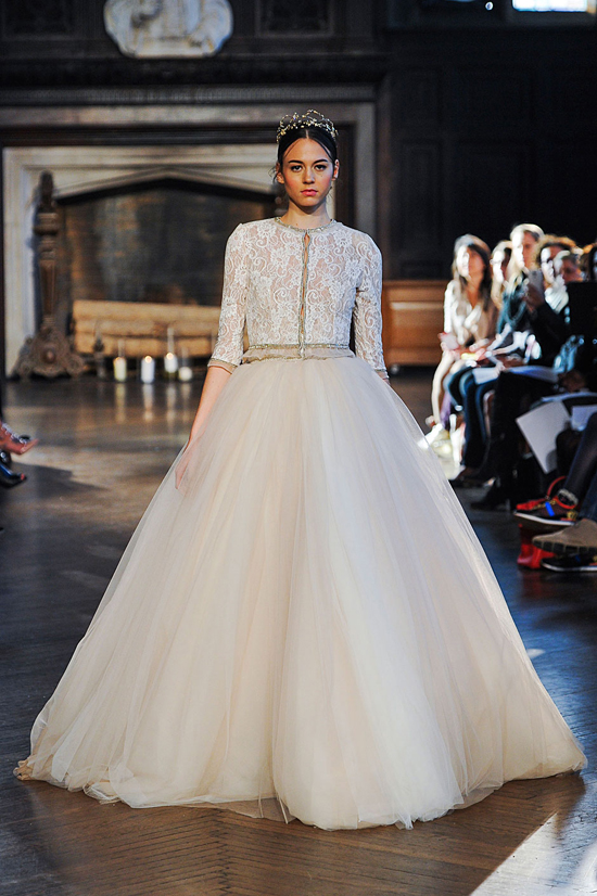 导语:无论是高级定制的压轴婚纱,还是纽约婚纱周的秀场,都在告诉我们一件事——婚纱与时装的界限越来越模糊。尤其是秋冬婚纱中,混搭一件小外套渐成趋势,既保暖,又可以让婚纱的样式更加新颖丰富。下面就来跟小编一起看看大师们是如何玩转外套与婚纱的搭配的吧!