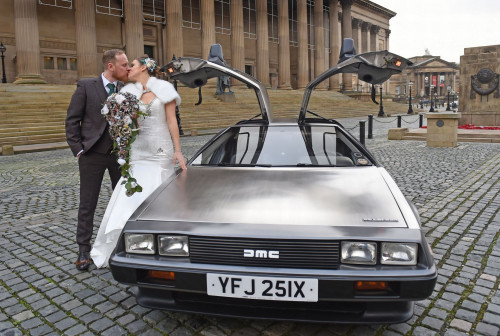 20世纪80年代末90年代初,由美国重金打造的系列电影《回到未来》红遍世界各地,更因其酷炫的时光机“DeLorean”跑车而俘获众多男性粉丝的心。近日,它真身再现,成为英国利物浦一对新人的婚礼用车。新郎称,在他和女友人生中最重要的日子,他们决定使用以此作为婚车,承载他们的幸福。此举也吸引了众多路人的眼球。