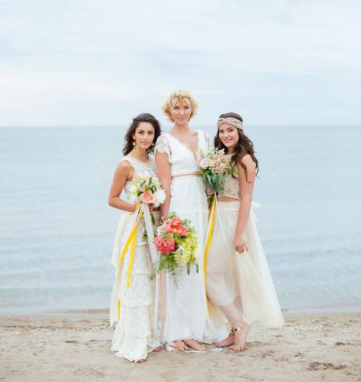 如果你不是一个坚信“只有新娘可以穿白色”的人,那你的伴娘装可以选择白色蕾丝款,与新娘类似。想着新娘说着“我愿意”在沙滩上,就知道这将是一个如梦幻般的浪漫婚礼,不止如此,服装的视觉效果也相当养眼。