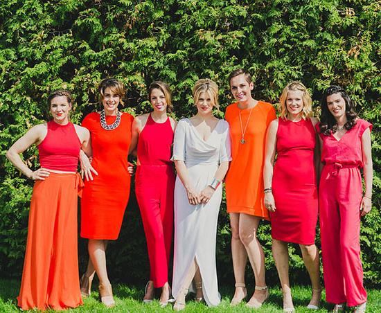 改变礼服和裙子似乎是简单的,如果把明亮色彩的衣服集中在一起,你的伴娘会站在那些穿着黑色和深蓝色的人群中,一定是最吸引眼球的了,是不是个很酷的颜色方案呢?