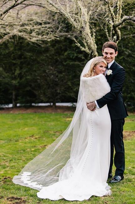 他们的婚礼在海兰兹举办,这个地方对于他们的人生来说有着非同一般的意义。婚礼当天,新娘一席典雅摩登的白色礼服,简单大方。礼服包裹着新娘的曼妙身段,裙尾微喇的设计让她显得甜美优雅,气场十足。