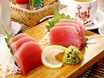 生鱼片(日语中叫"刺身")是日本料理中最有代表性最具特色的食品。江户时代以前,生鱼片主要以鲷鱼、鲆鱼、鲽鱼、鲈鱼为材料,这些鱼肉都是白色的。明治以后,肉呈红色的金枪鱼,鲣鱼成了生鱼片的上等材料。现在,日本人把贝类、龙虾等切成薄片,也叫"刺身"。其中河豚鱼是生鱼片中的佼佼者。