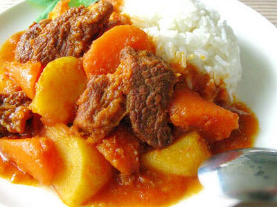 材料:牛肉、土豆、西红柿、洋葱、胡萝卜、盐、糖、胡椒粉。