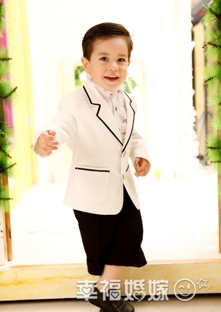 [礼服] 应和伴娘的礼服相协调,并能突出孩童的气质。如果买不到合适的小礼服,去婚纱影楼都可以租借到。和花童一样,戒童的礼服也由其父母购买,并在婚礼当天护送他到达婚礼地点。