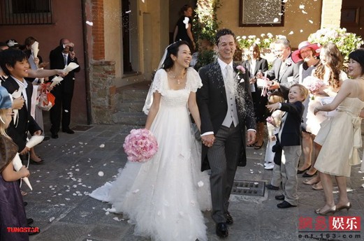 10月1日,莫文蔚与德籍男友在意大利的佛罗伦萨完婚,一对新人在众人的祝福声中轻吻,尽显浪漫。