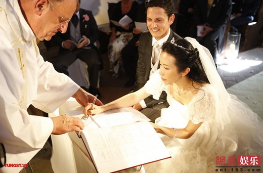 莫文蔚与男友佛罗伦萨完婚 婚礼现场甜蜜秀吻