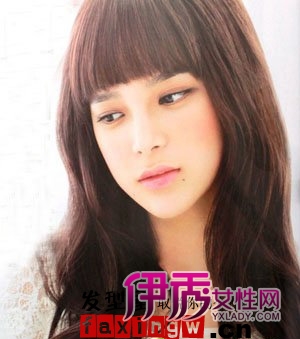 齐刘海长烫发打造出如洋娃娃般可爱的女生,深棕发色衬托出女生白皙的皮肤。从头发中端微微卷至发尾的弧度,显的很是浪漫唯美。齐刘海下闪烁着灵动气息的美丽双眸,很是动人。此款发型是卷发发型的首选哦。