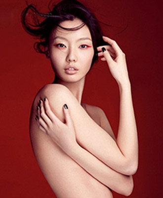 解析:精细与浅淡是关键词。亚洲人的眼睛很难驾驭红色,特别是大面积的晕染,因此,用眼影刷蘸取红色眼影淡淡晕染下眼线部位以及上眼尾处最为精彩,这点小小改变会让你的眼神带点妖娆意味,在烛光下别具风情。