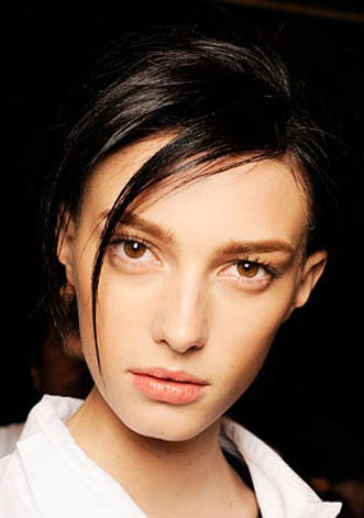 酷感十足的黑色露额发型,搭配松散的发型设计,酷感之余不失女性甜美。